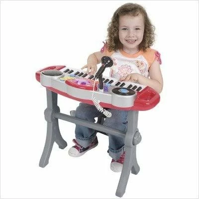 Electronic Keyboard of 37 keys for children. With flashing lights. Has function of recording and playback together with the platform of scratch DJ and sound effects. The set comes with a stand and a stool. 8 choices of selection of instruments, 8 rhythm battery, 5 sounds and tempo control.