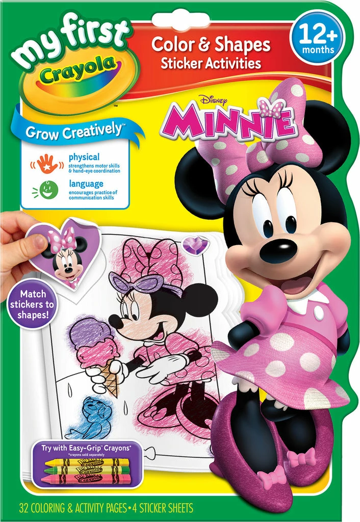 The Crayola My First Color and Activity Book is designed to develop colour and shape recognition skills using popular Disney Minnie characters. It’s ideal for toddlers and pre-schoolers who wish to match the stickers to the correct shapes.