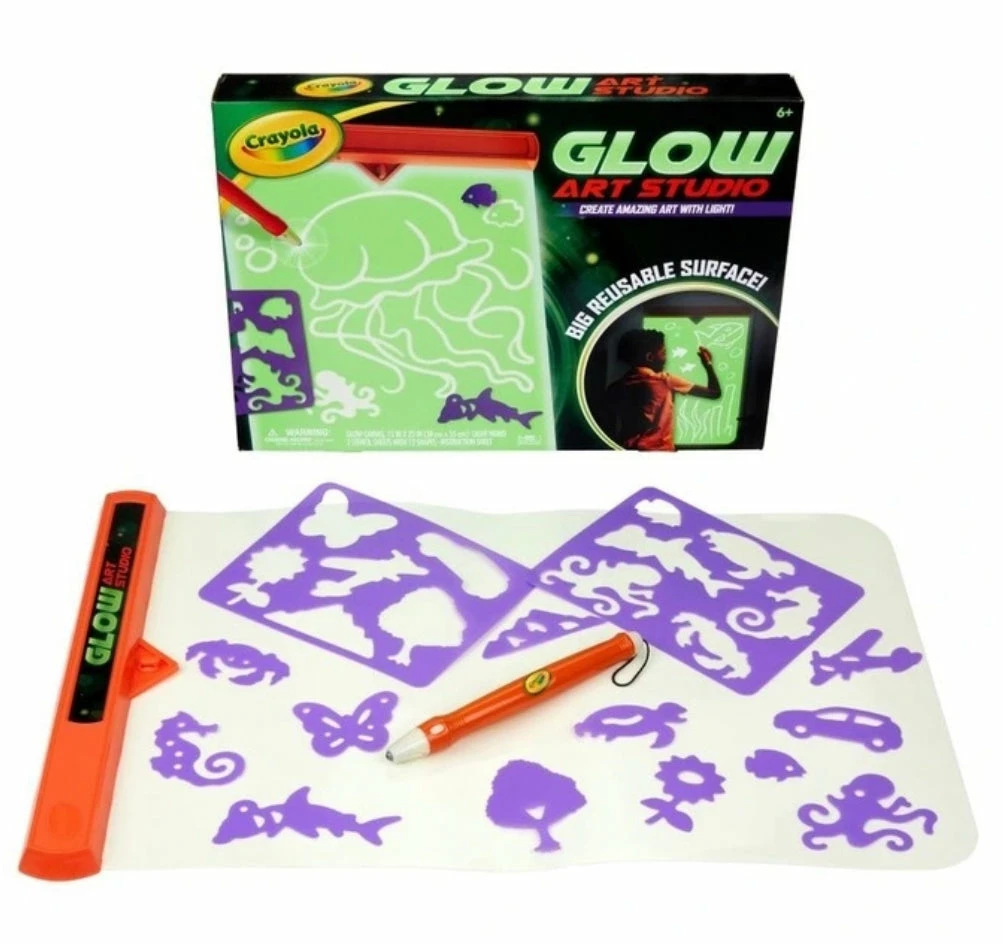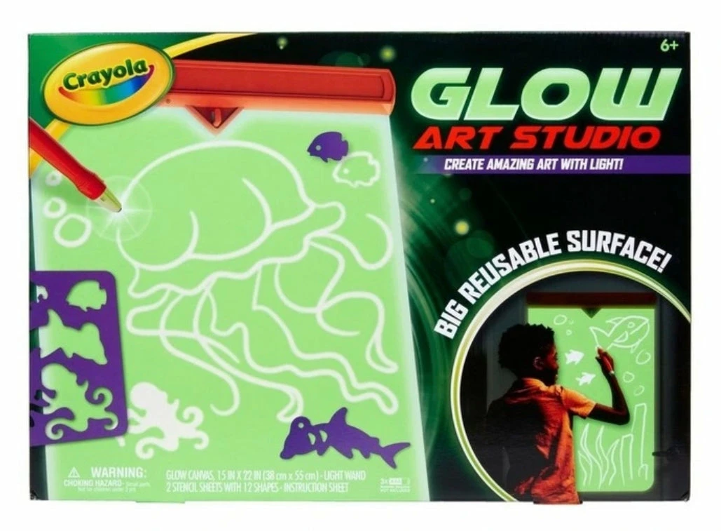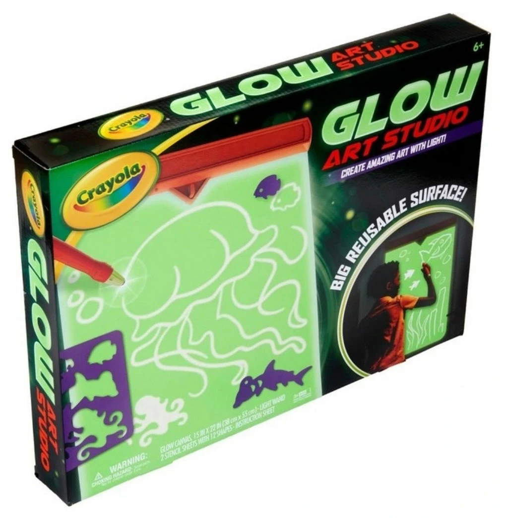 Every day is a glow in the dark party with the Glow Art Studio from Crayola! Perfect for kids who love glow in the dark toys, this unique art set includes a special battery-operated Light Wand that kids can use to draw on the included Glow Canvas.