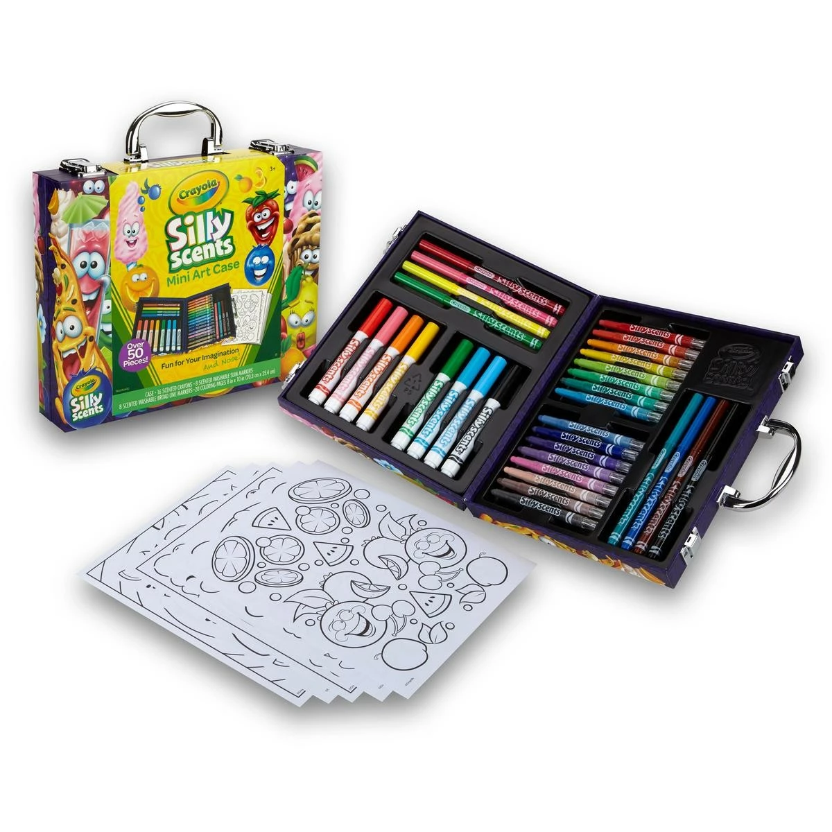 Get ready to be creative, because this super silly scented art case contains all the scented Crayola tools you’ll need to create amazing scented art! Contents include – 16 Silly Scents Mini Twistable Crayons, 8 Silly Scents Slim Markers, 8 Silly Scents Broad Line Markers and 20 Sheets of Paper with Silly Scents Page art.