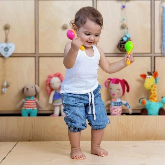 This colourful mini maraca with a great sound. It features a textured and chunky handle ensuring an easy grip for small hands. This delightful musical toy helps develop creativity, motor skills, hand-eye co-ordination and teaches cause and effect.