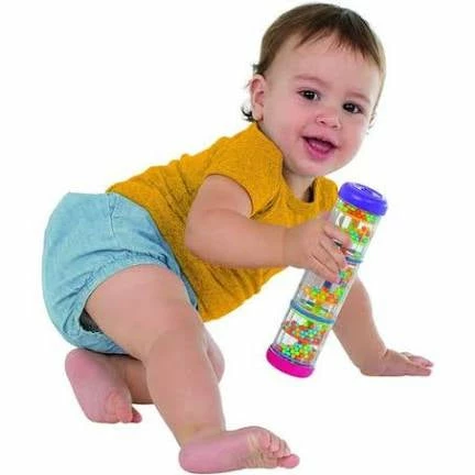 The Mini Rainbomaker is a real, durable musical instrument which recreates the soft sound of falling rain. By turning the Rainbomaker, baby will be able to watch as the colourful beads cascade through the tube, creating fascinating sounds and visual effect that will delight young children. The Mini Rainbomaker is strong, durable and comfortable for little hands to hold and helps to develop vital skills such as hand-eye co-ordination, motor skills and creativity. Halilit’s durable, high quality and safe musical instrument toys are used in pre-schools, baby groups and nurseries across the country, ensuring you’re choosing a highly trusted and respected brand. Suitable from 6 months.