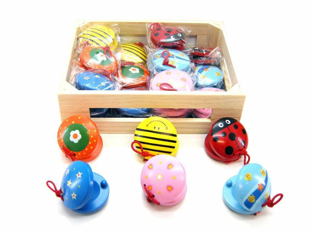 Made from good quality wood and painted with non toxic paint. Each castanet produces a clicking sound when played.
